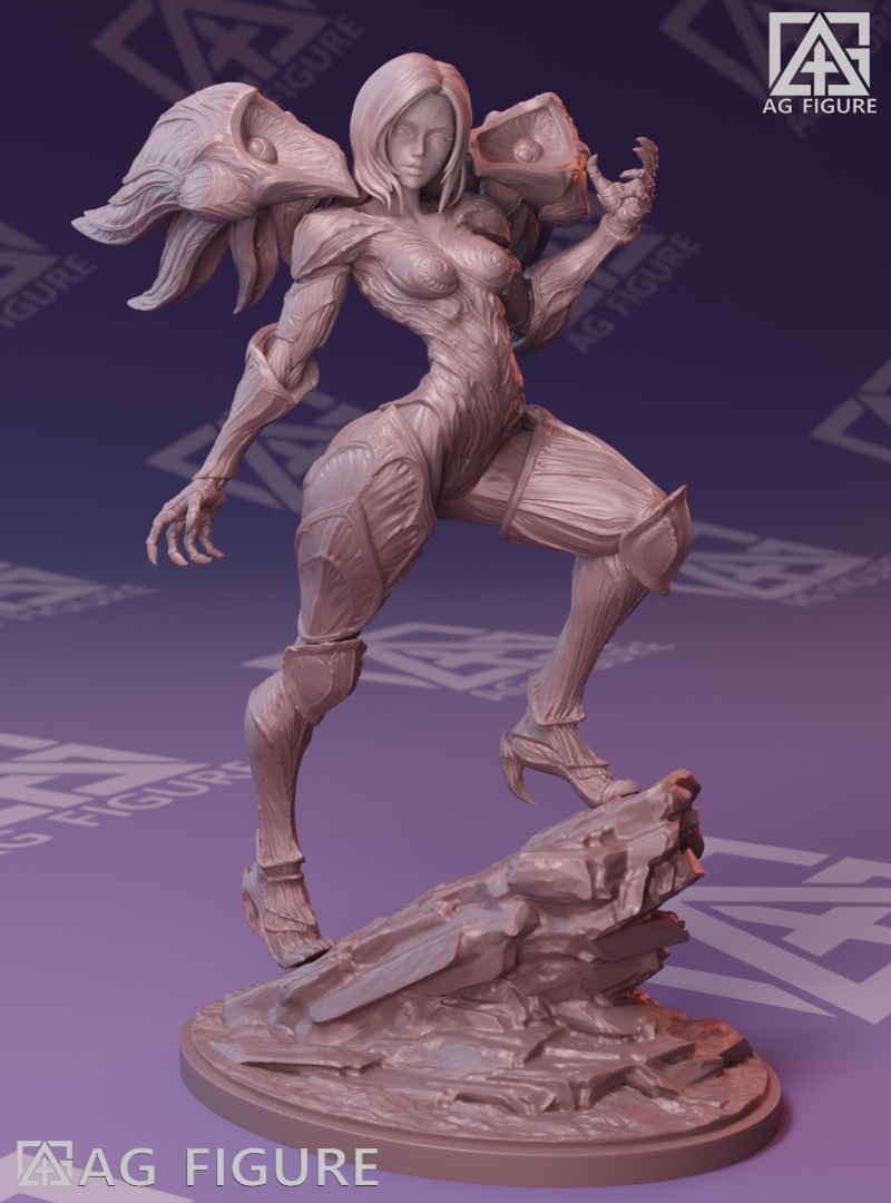 Thank you for your patience! Meet 'Kaisa' from 'League of Legends', an enchanting character who harnesses the power of the Void. Clad in a stunning suit, she dominates the battlefield with her presence.
